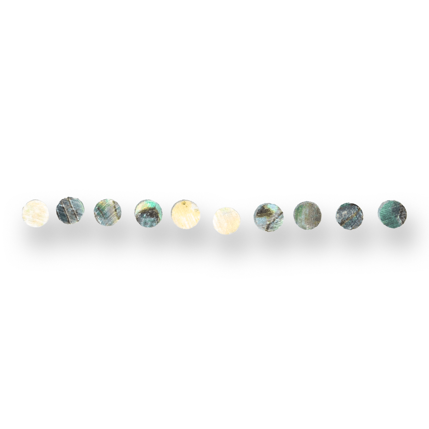 Set of 10 Real Abalone Side Dot Inlays for Fretted Instruments.