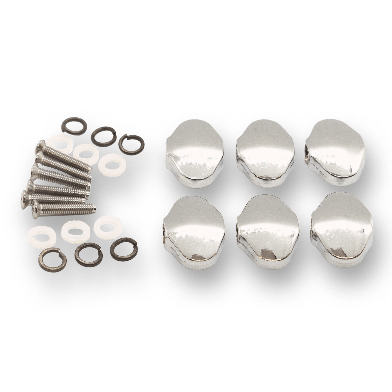 Set of 6 Machine Head Buttons with Washers and Screws available in Chrome or Black