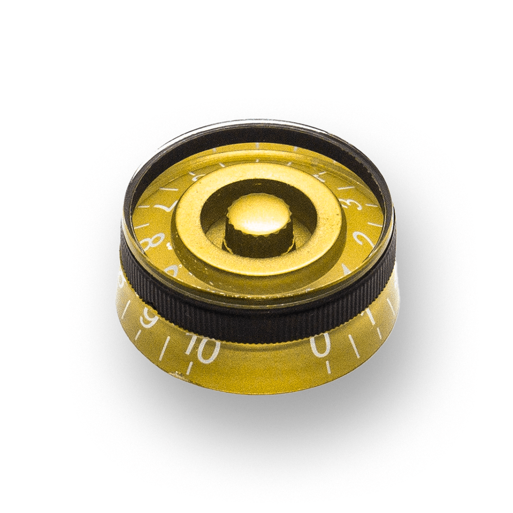 Vintage Les Paul Style Speed Knobs with Rubber Grippy Ring available in Black, Transparent and Gold.