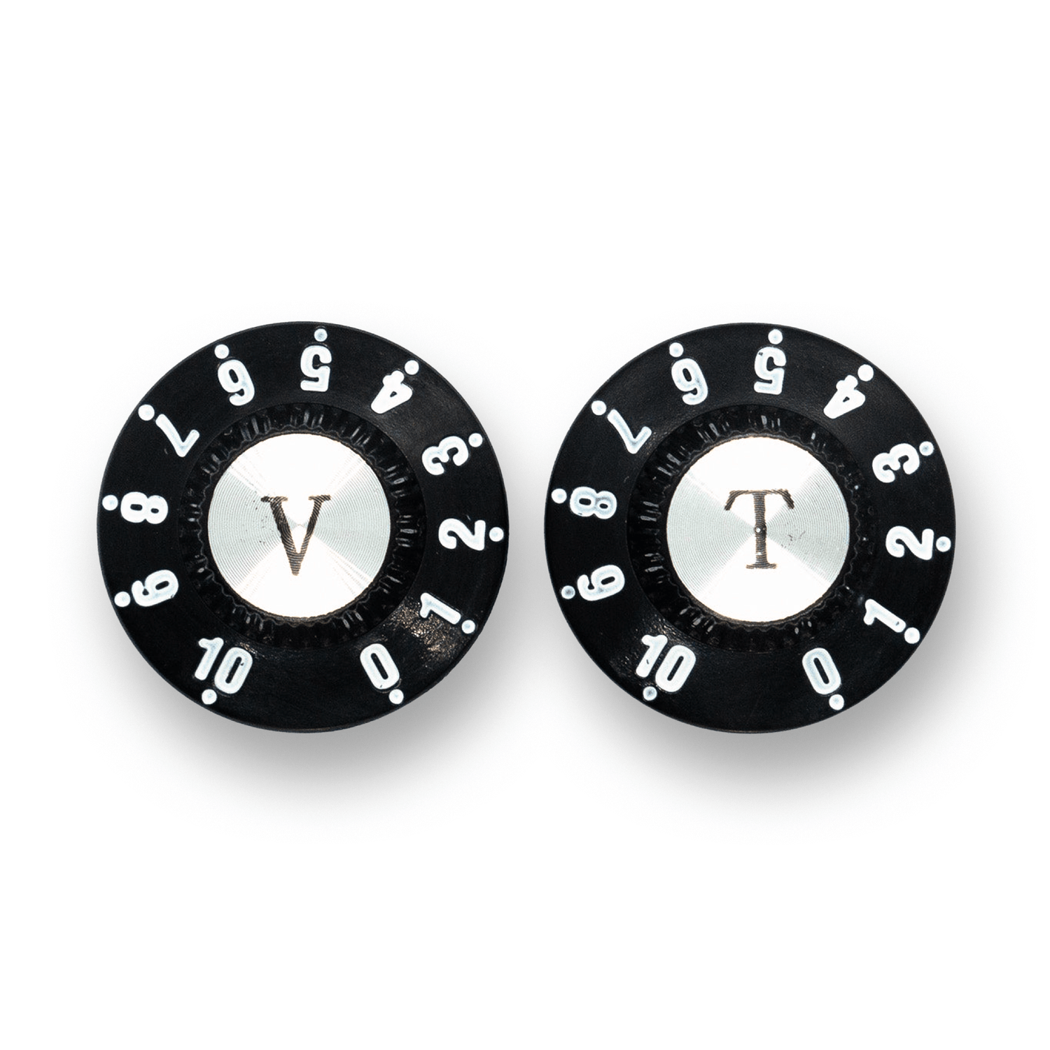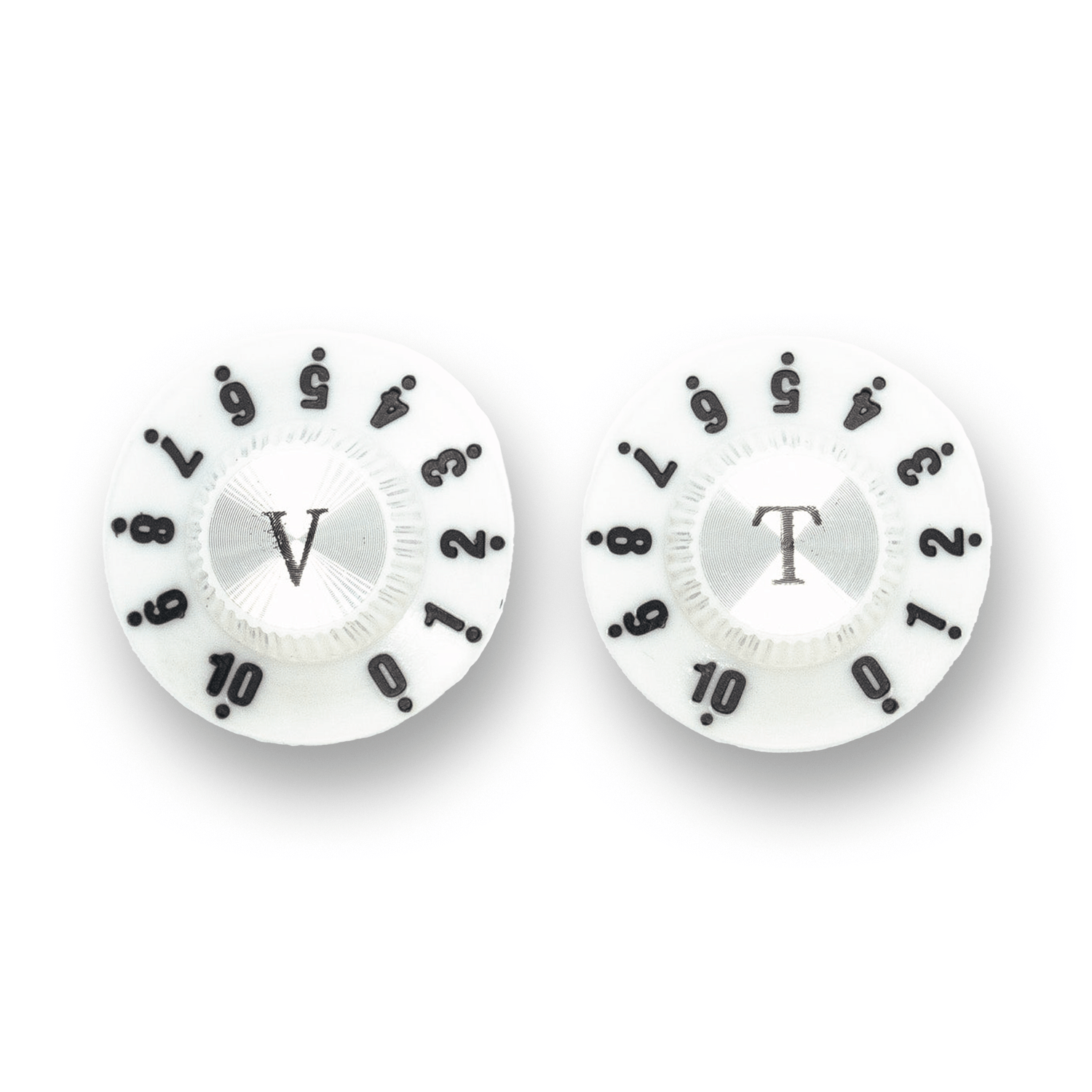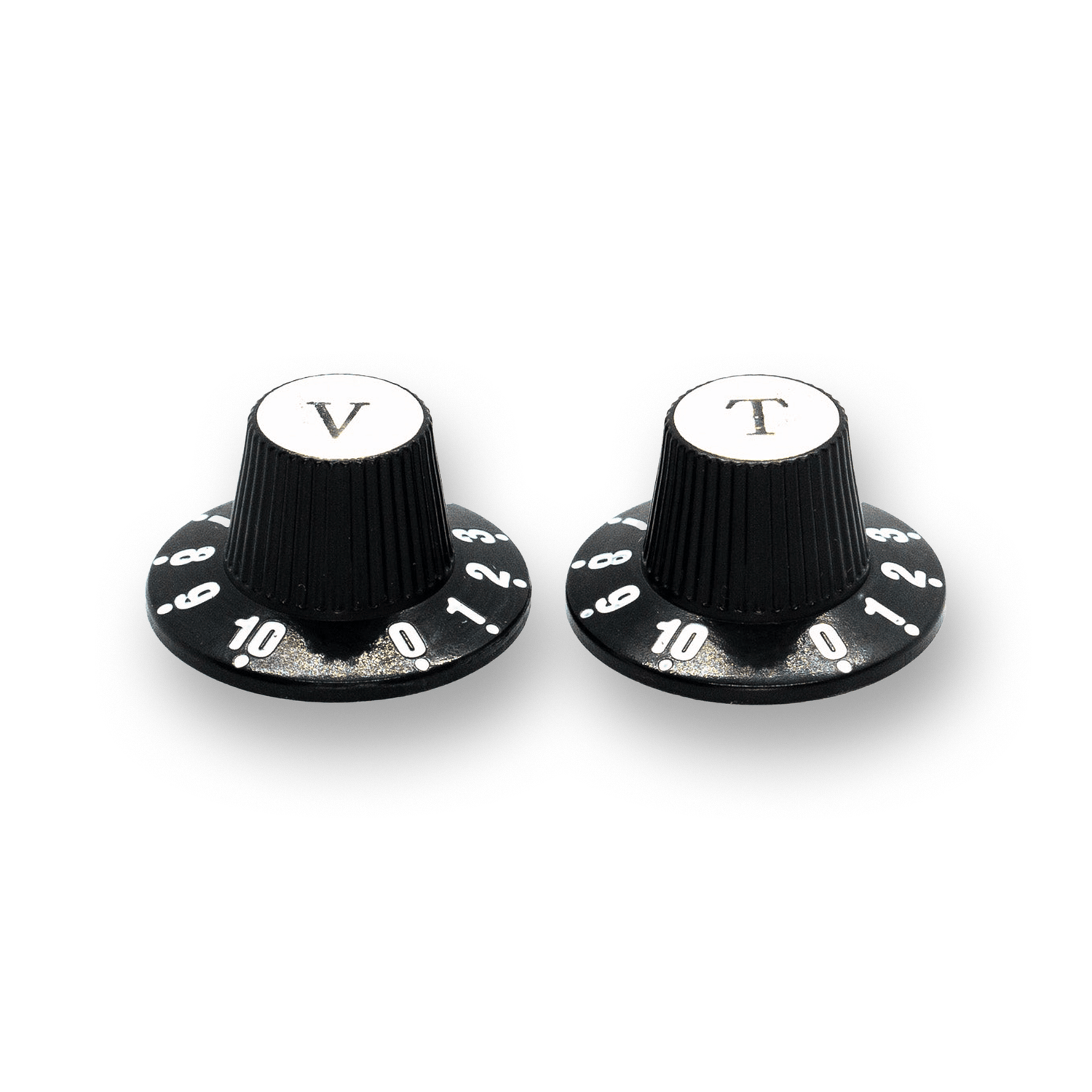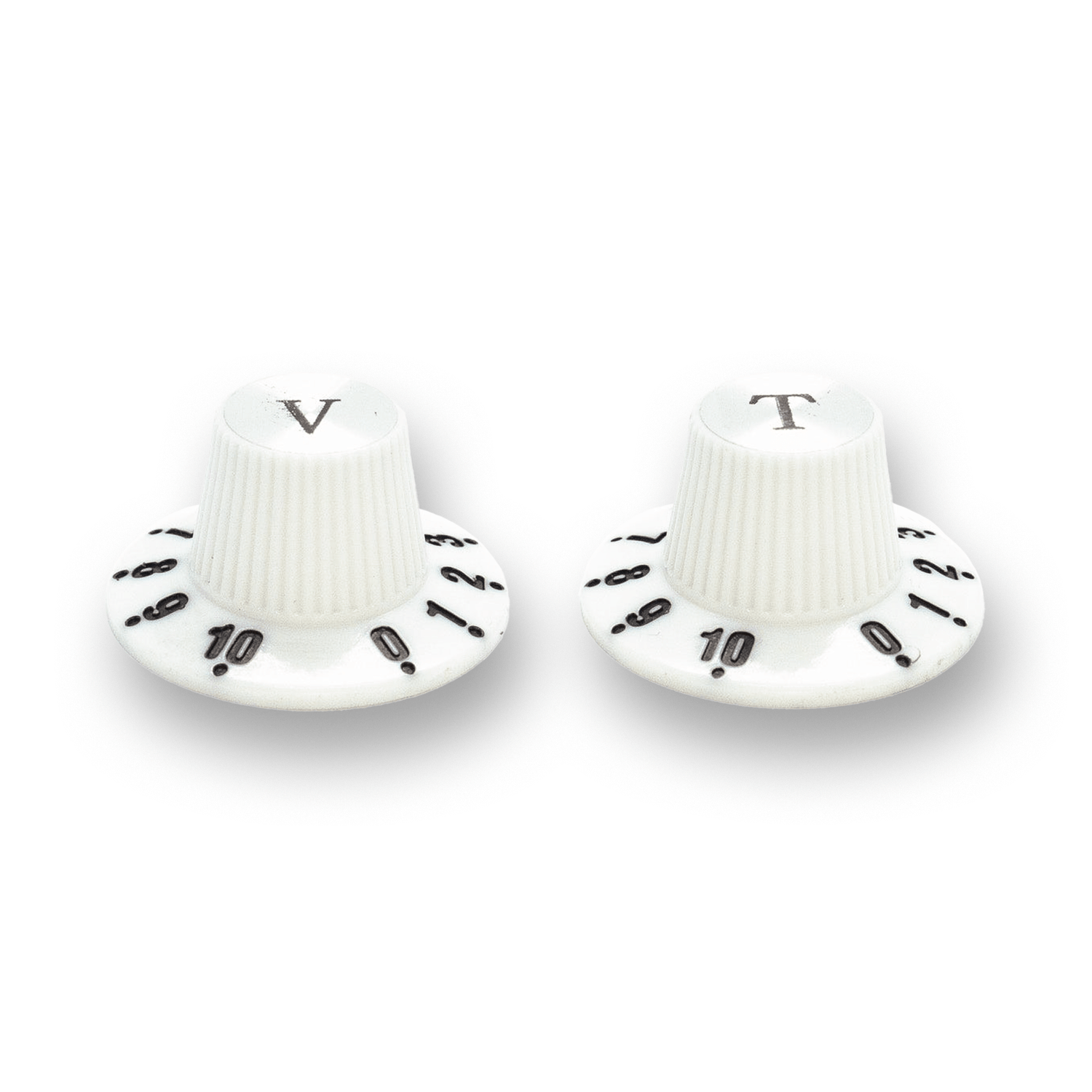 Plastic Witch Hat Reflector Knobs with T and V Lettering on top. One of Each Per Set. Available in Black or White