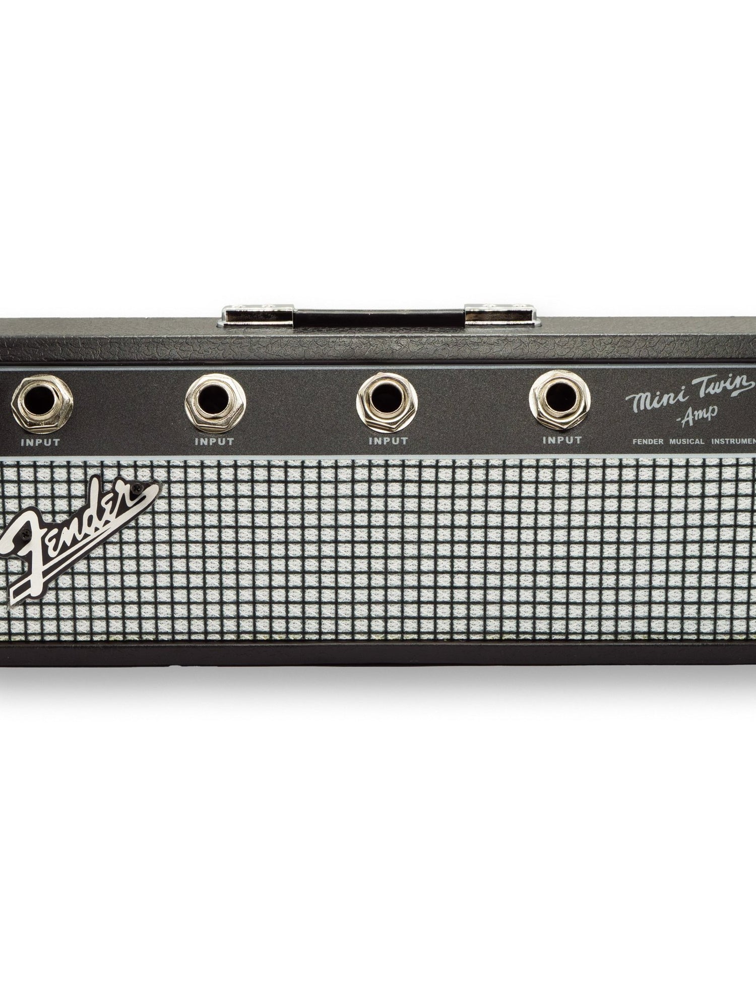 The perfect accessory for any music lover or guitarist. This official Fender Jack Rack holds up to 4 sets of keys using real 1/4" jack-style keyrings—just plug them in like a guitar cable. Comes with 4 jack keyrings, wall mounting screws, and wall plugs for easy installation. Looks just like a miniature amp and keeps your keys organised in true Fender style.