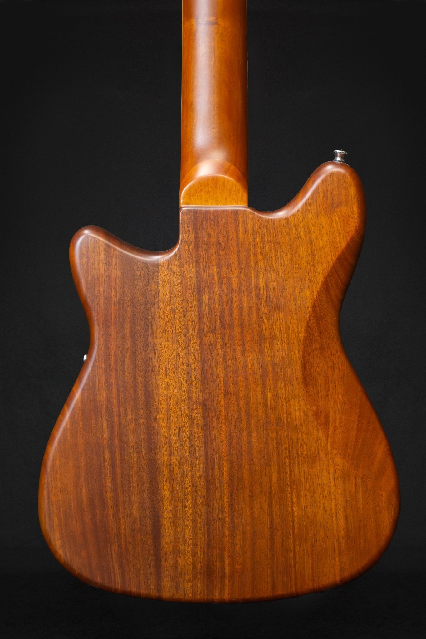 This superb short –scale, double-cut model with its reduced cutaway on the underside of the body, allows easy access to the full length of the mahogany neck and all 24 frets of the bound, double octave jatoba fingerboard.