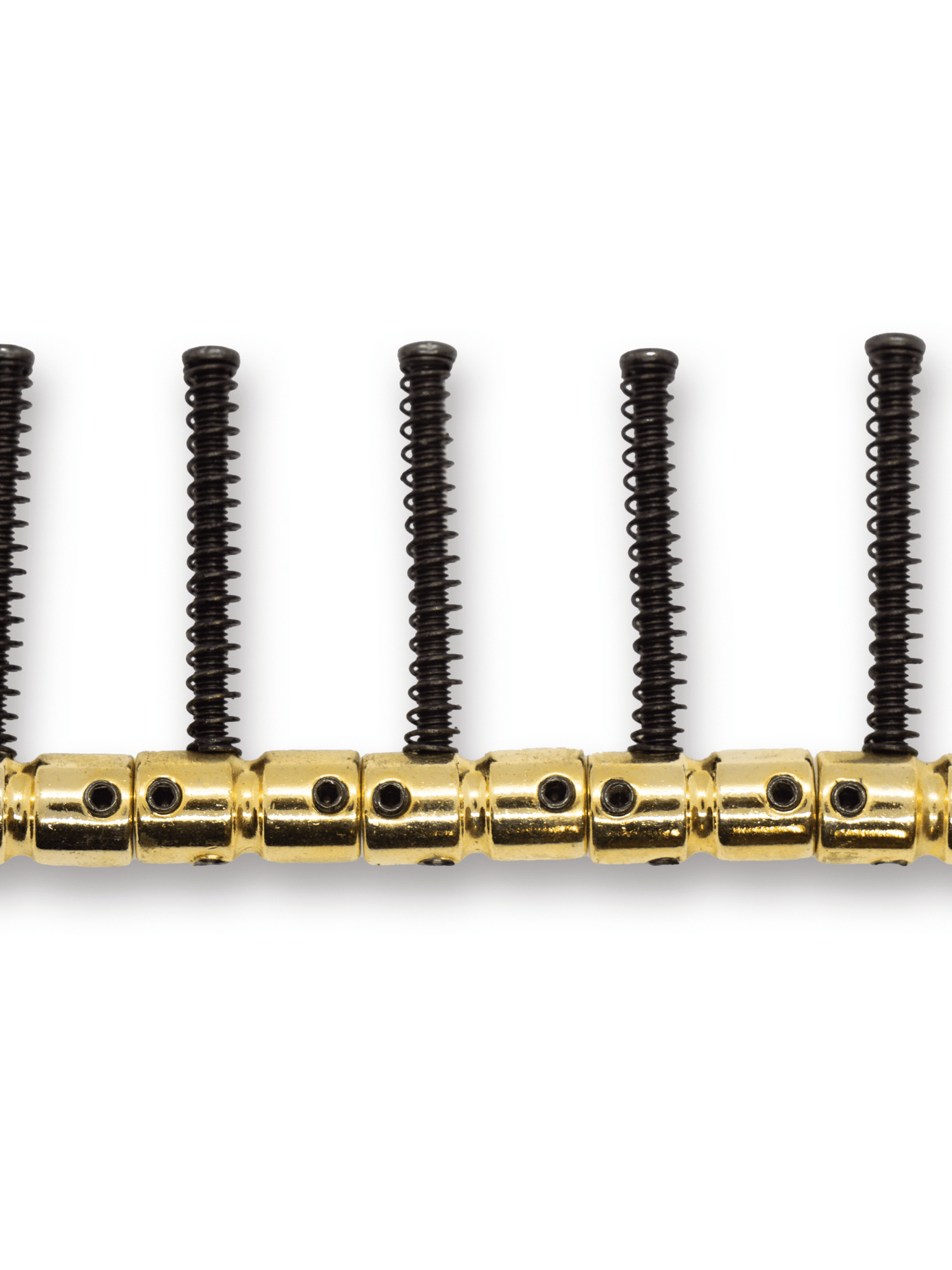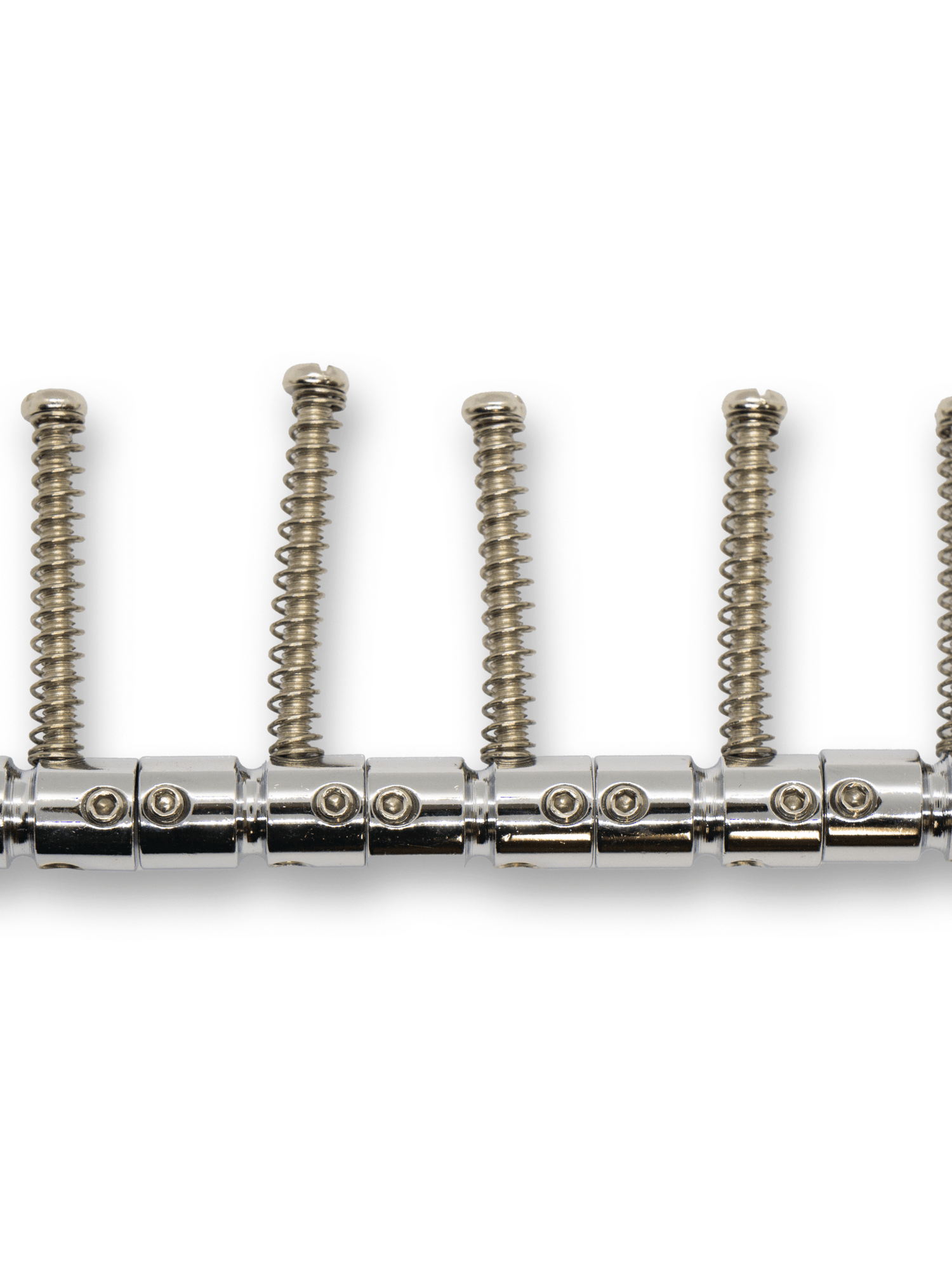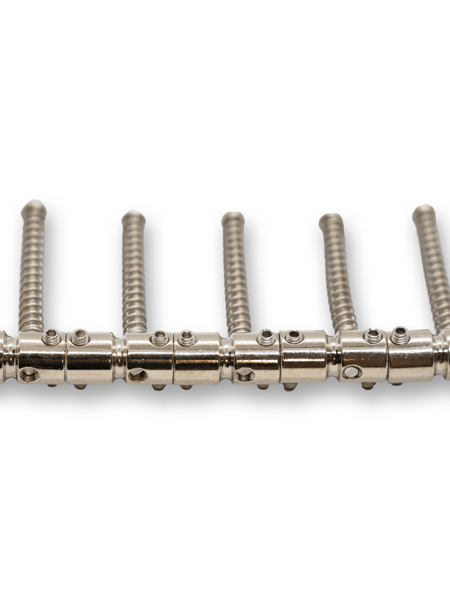 Bass guitar saddles with offset screw fitting.