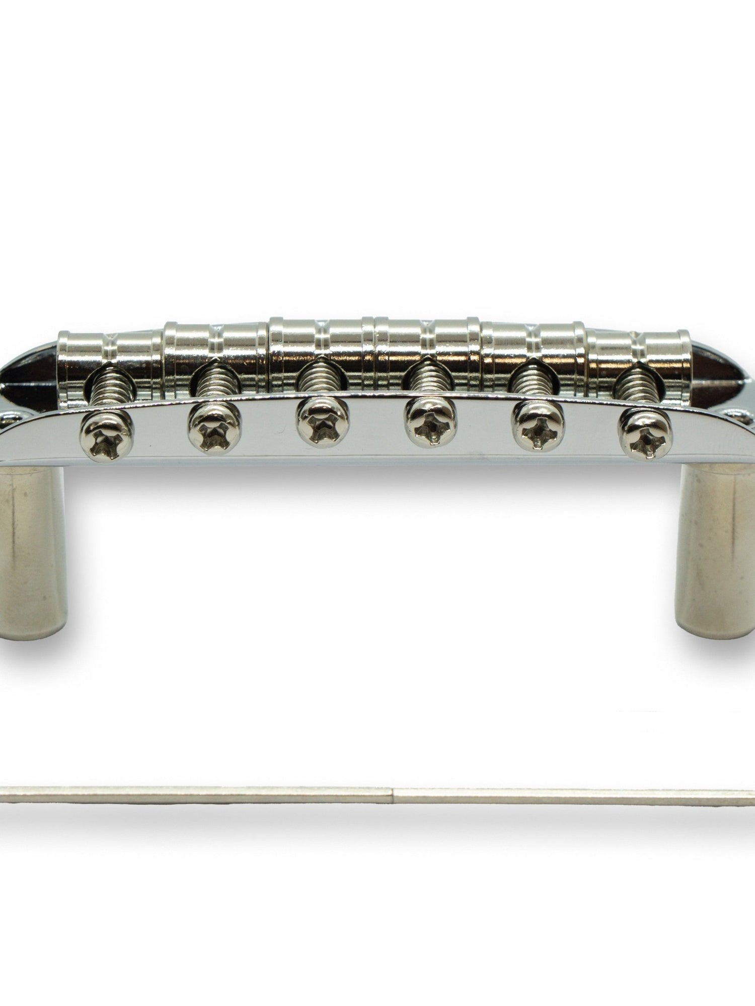 Ideal for restoring vintage models or upgrading modern reissues, this bridge is a drop-in fit for most offset guitars with standard post spacing and includes height and intonation adjustment screws. Whether you're looking to eliminate string slippage or simply enhance feel and tone, this bridge delivers reliable performance with period-correct styling.