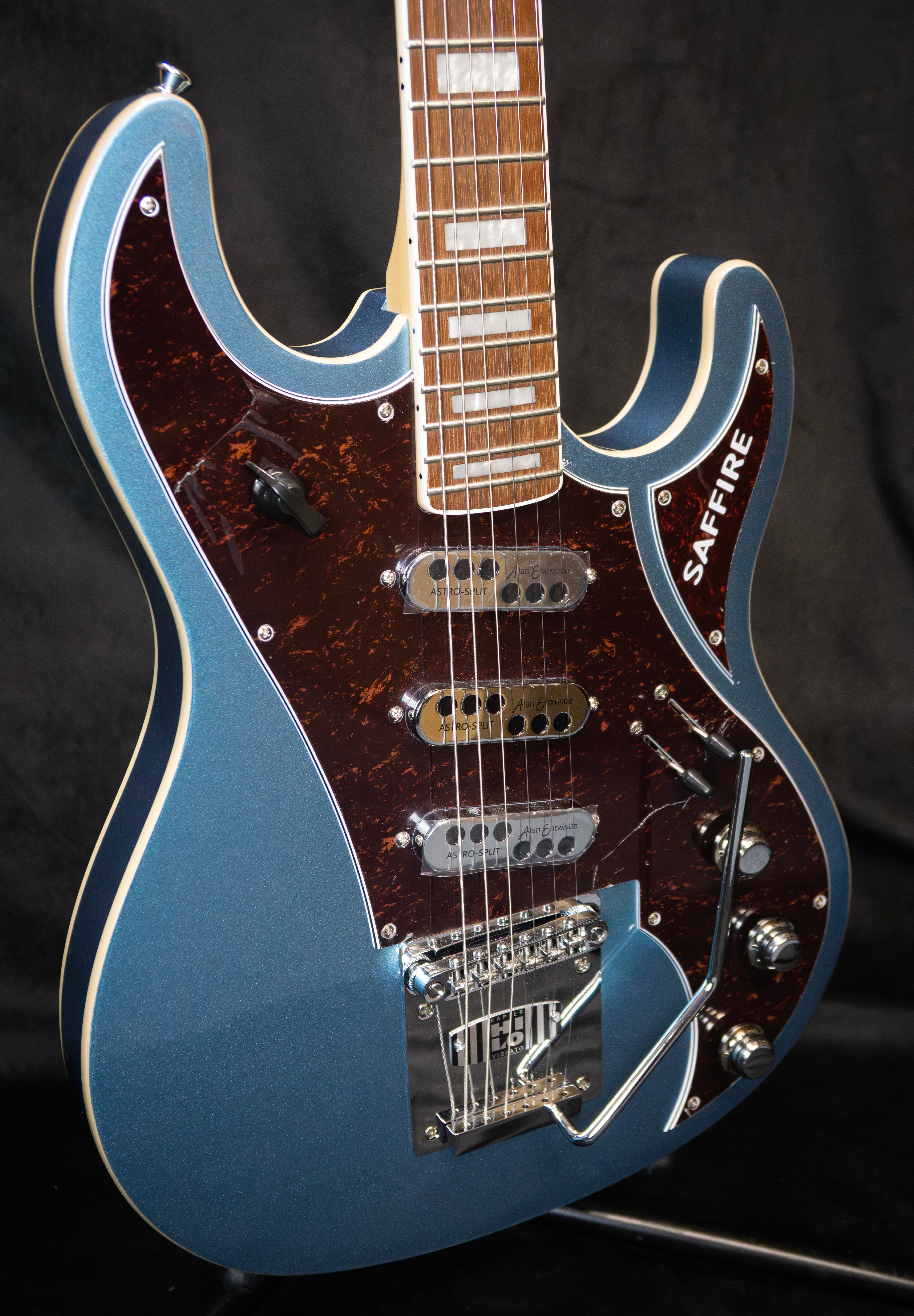 Equipped with three Alan Entwistle Astro-Split pickups, the Saffire Ultra offers a wide tonal palette. The ATN-5 tone circuit and 5-way selector allow for both classic and coil-split sounds without the need for push/pulls. The Hi-Lo Resonance vibrato system, roller bridge, and Wilkinson E-Z-Lok tuners ensure excellent tuning stability and smooth performance.