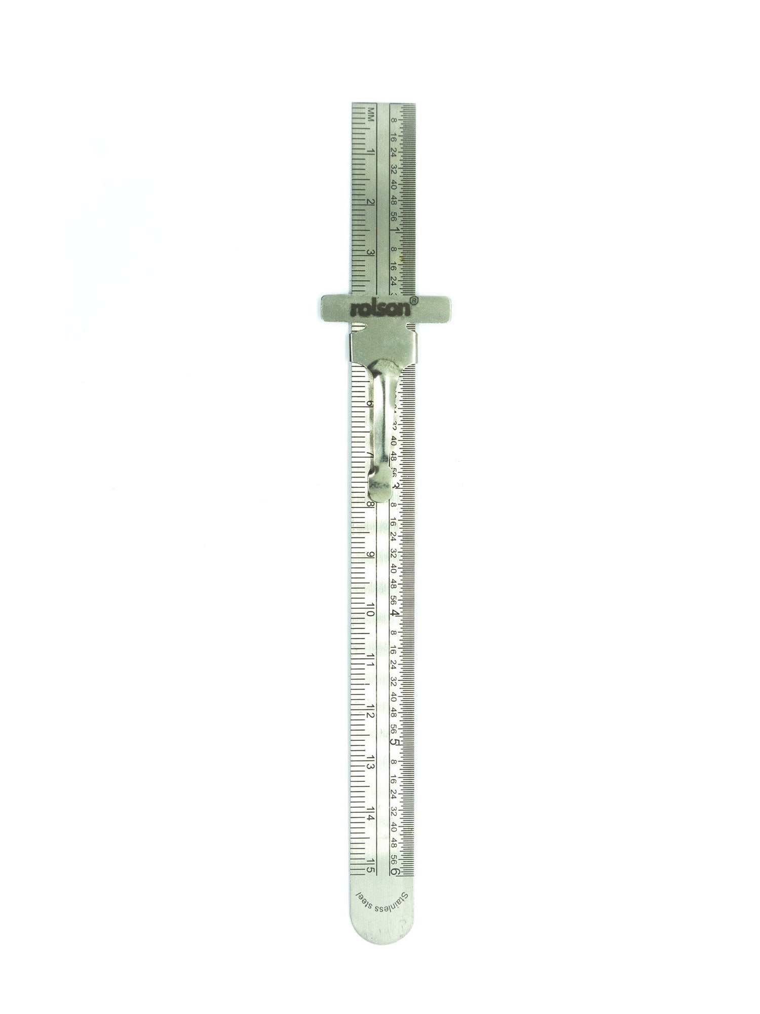 Stainless steel rule with etched graduations in 1/2mm, mm, 32nds and 64ths.